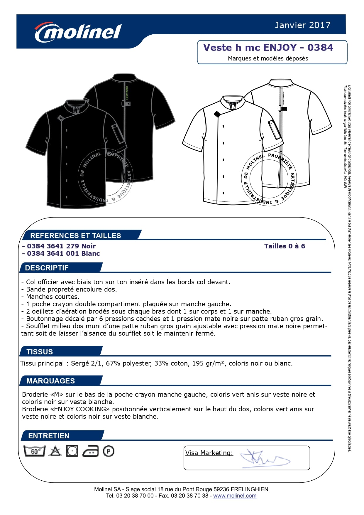 0384364 VESTE CUISINE ENJOY MANCHE COURTES MOLINEL