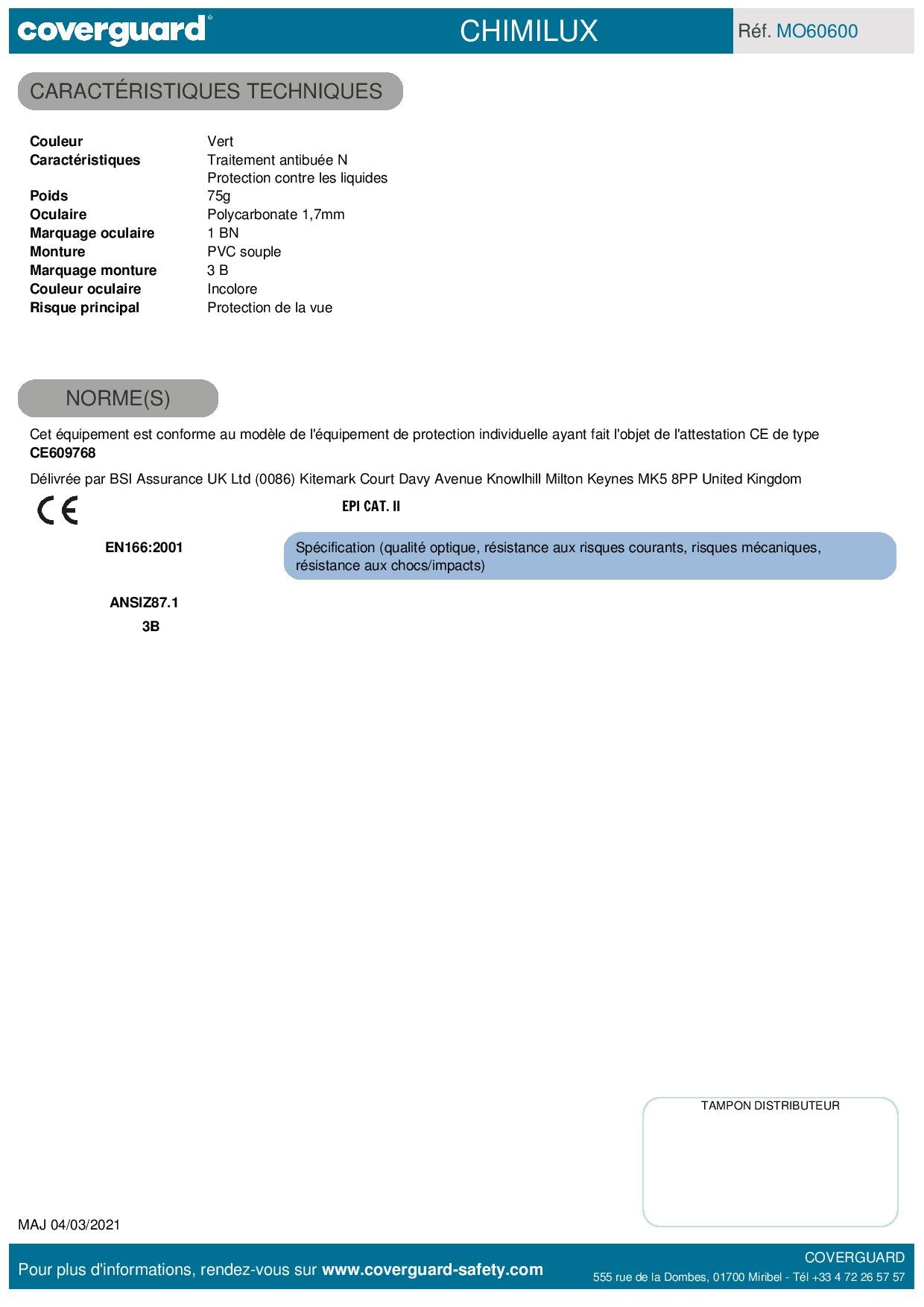 Lunettes CHIMILUX polycarb. incolore, anti buée